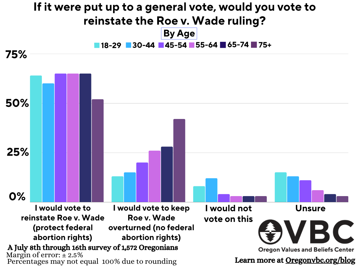 Thanks as always to OVBC for this week’s graphic. Oregonians overwhelmingly support reinstating federal abortion rights—and the gap grows wider among younger cohorts.